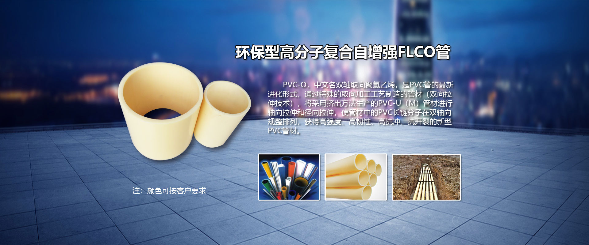 產品介紹FLCO管,中文名環保型高分子復合自增強FLCO管,是我公司PVC管道最新研發成果。它通過特殊的取向加工工藝制造,在擠出時對PVC-...